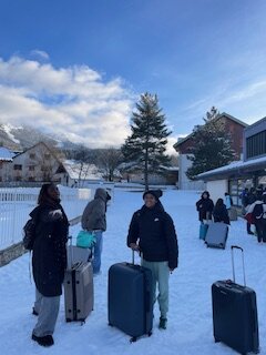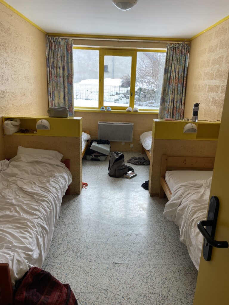 Nous posons nos affaires pour aller goûter, pour récupérer le matériel de ski, pour s’installer dans les chambres.