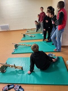 A 17h, début de l’atelier découverte du tir à la carabine laser avant le repas.