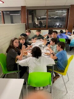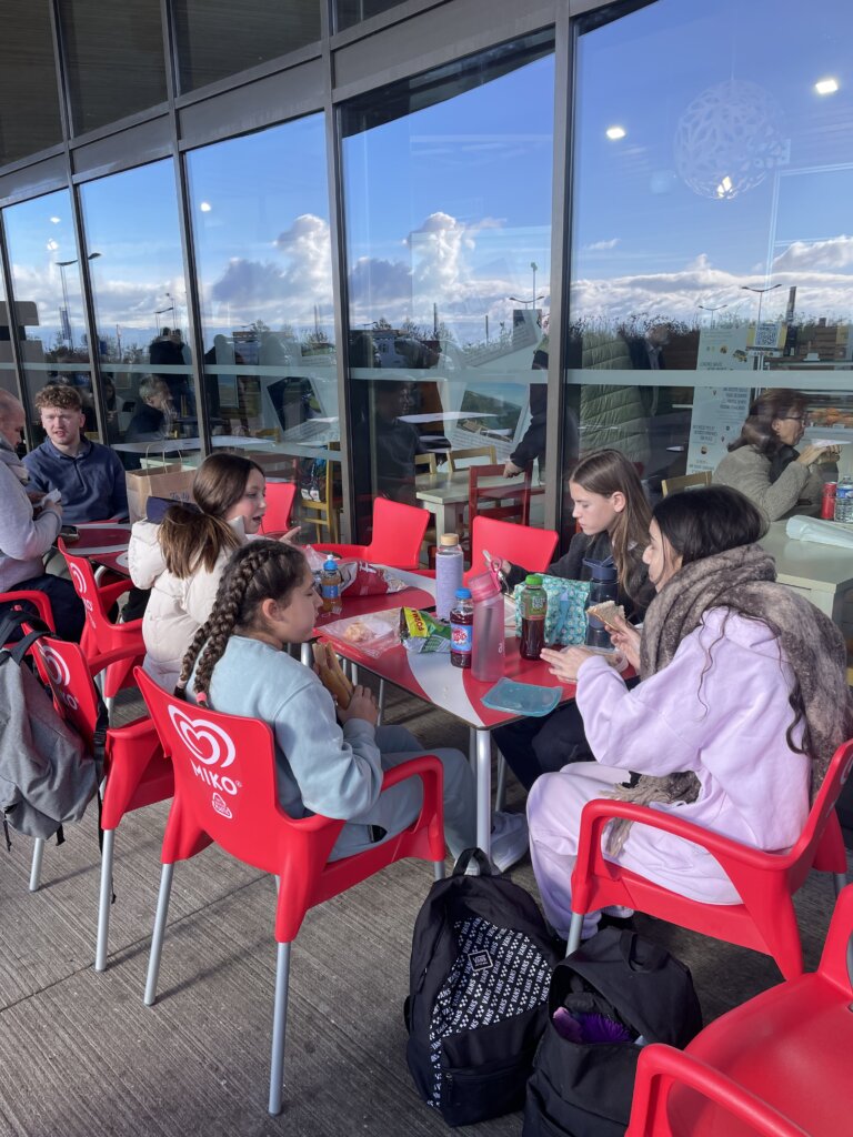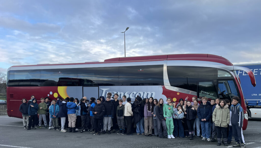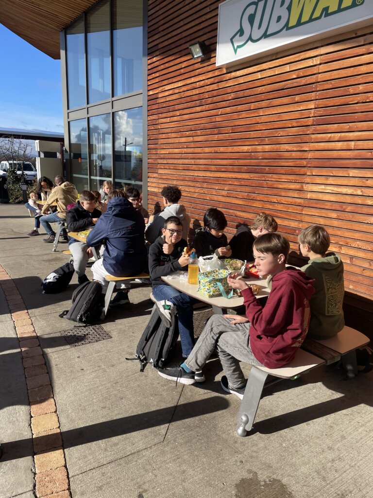 Après un chargement des bagages en collaboration avec les élèves, nous déjeunons et le départ est donné à 13h15!
