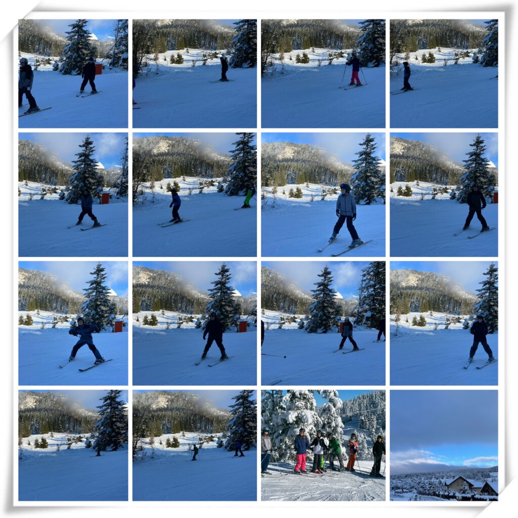 La majorité des élèves a bien progressé, des évolutions dans les exercices sont proposées avec des slaloms ou des rampes. Les montées se font exclusivement avec le tapis car le reste de la station est fermée. NOUS AVONS L’ESPACE A NOUS TOUT SEUL!!!!!